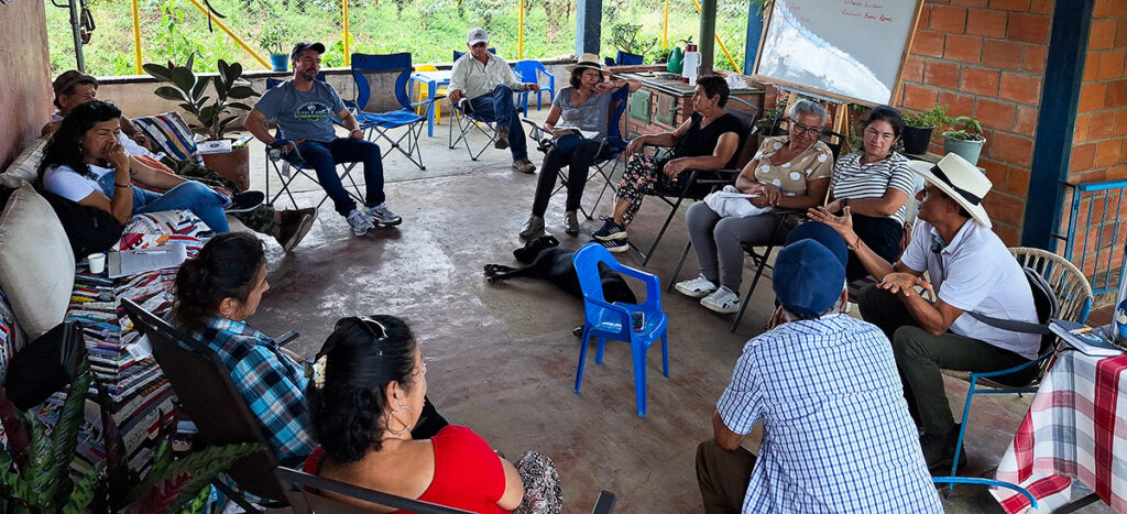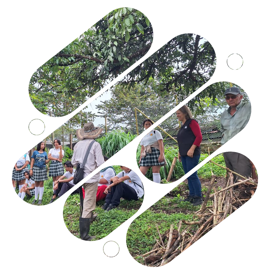 Parcela Escuela es una escuela viva de campo ubicada en la vereda Pueblo Rico (Quimbaya), donde la comunidad rural práctica, aprende y fortalece capacidades para transitar hacia la agroecología y adaptarse al cambio climático.